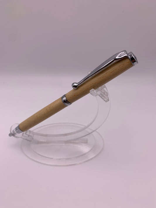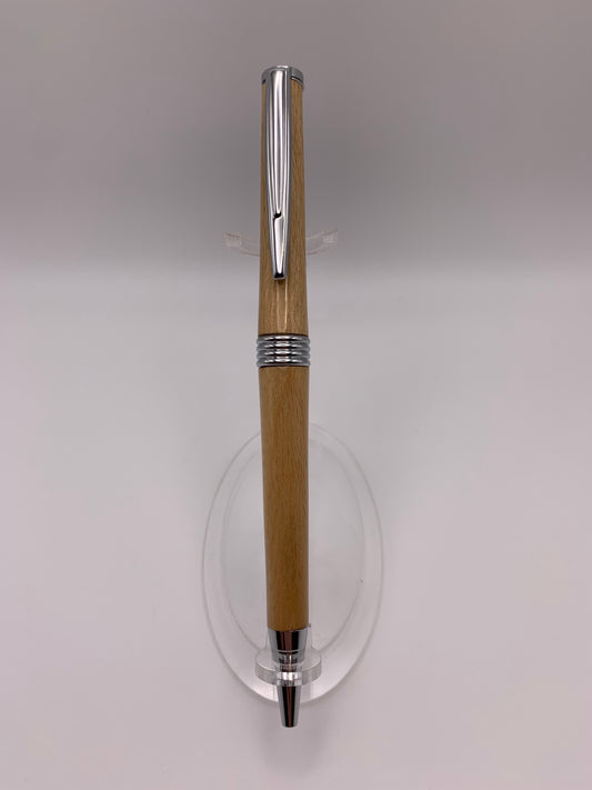 Handmade Wooden Pen: Beech Slimline in Chrome