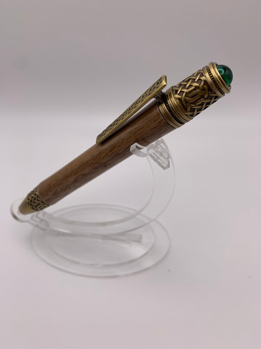 Handmade Wooden Pen: Black Walnut Celtic Pen in Brass