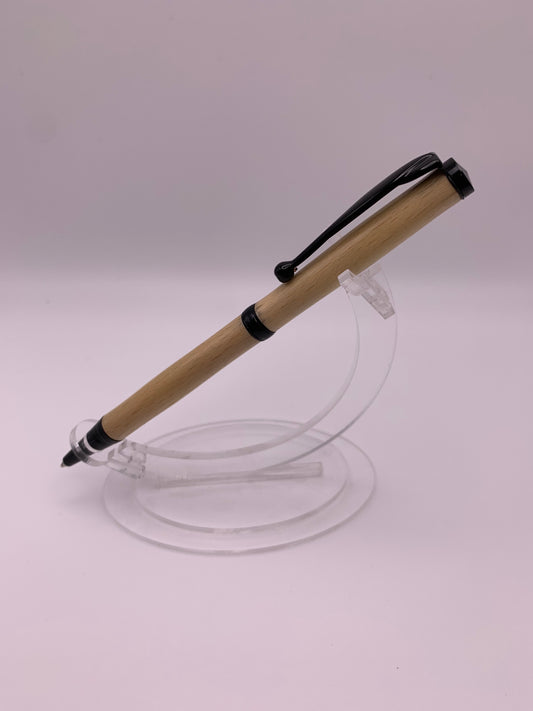 Handmade Wooden Pen: Beech Slimline Pen in Black Chrome